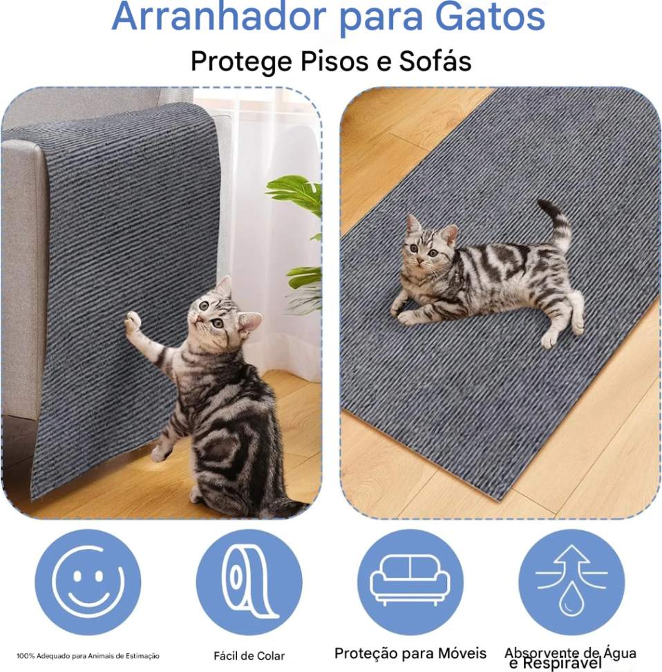 Design autoadesivo perfeito: a parte inferior do tapete para arranhar o sofá para gatos é feita de 100% autoadesivo, você pode transformar quase tudo em um poste para arranhar sem precisar de ferramentas ou pregos, pode ser colada firmemente em qualquer madeira, vidro, algodão, e tecidos de linho, superfícies de couro, não danificam a superfície do seu produto, uma vez firmemente afixado, será totalmente seguro e protegido, não será facilmente arrancado, você pode ter certeza de usá-lo.