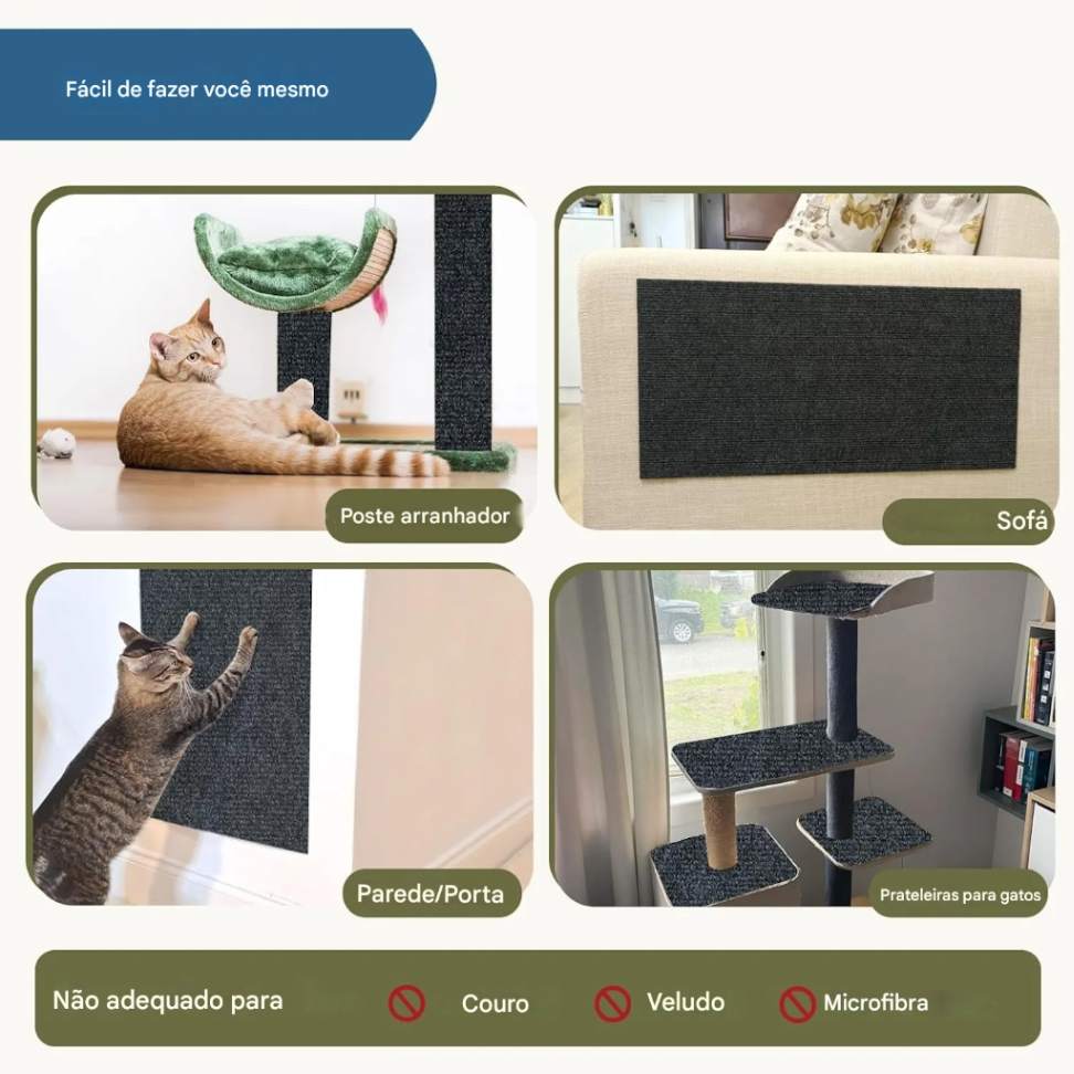 Amplamente utilizado: o protetor de sofá para arranhar gatos pode ser usado em várias superfícies, como madeira, plástico, vidro, concreto, couro, etc. Você pode cortá-lo livremente em qualquer formato de acordo com o tamanho real que você precisa e usá-lo para prateleiras de gatos, árvores de madeira ou madeira para gatos, torres de gatos, sofás ou outros móveis e outras substituições de carpetes de superfície.
