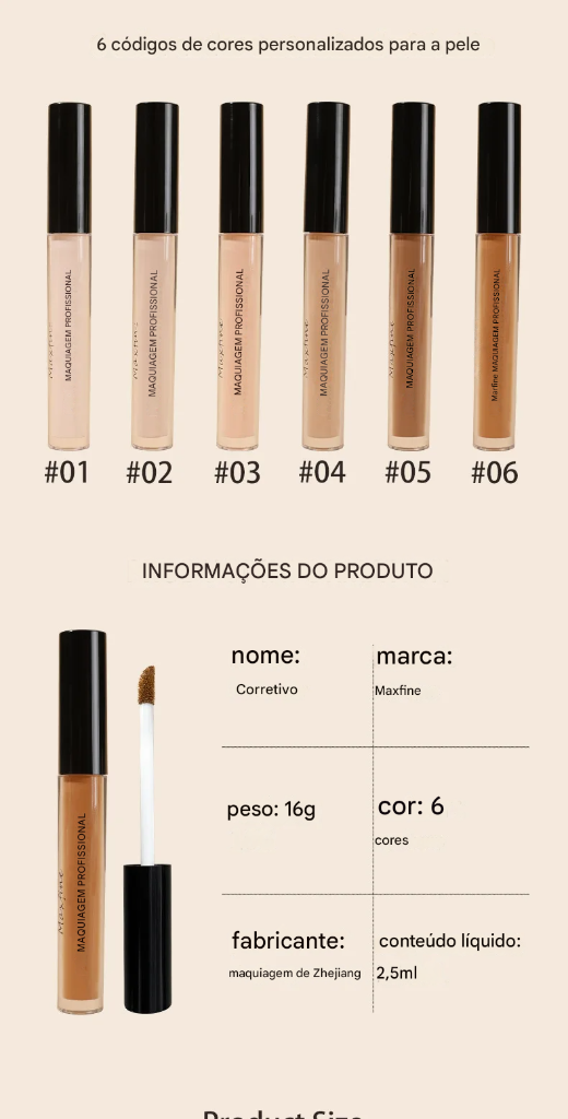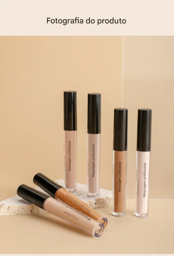 Corretivo Líquido Fosco de Alta Cobertura Profissional Maxfine, Hidratante, Corretivo de Alta Duração