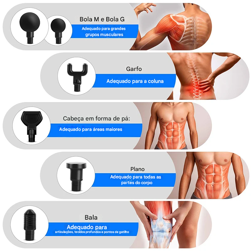 - 6 cabeças intercambiáveis específicas para cada grupo muscular
