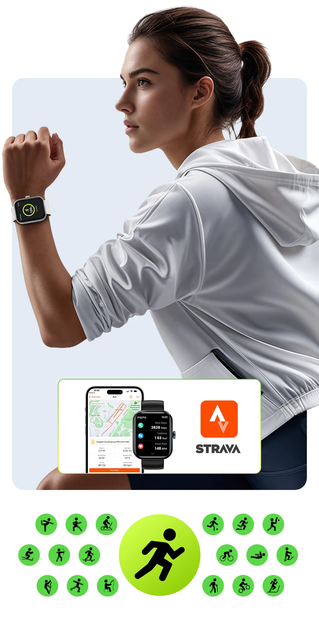 - Mais de 100 mostradores personalizáveis