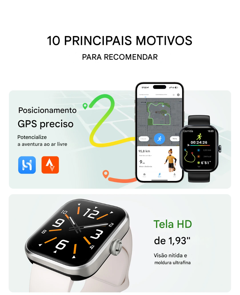🤔 "Mais um smartwatch igual aos outros?"❌ ERRADO! Tela HD gigante de 1,93", GPS integrado, 15 dias de bateria, Bluetooth 5.3 e mais de 120 modos de treino!