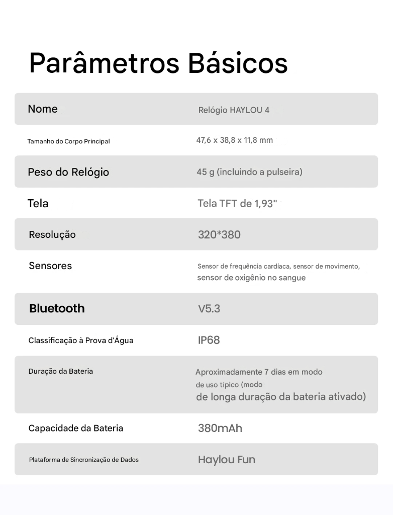 - Aplicativo: Haylou Fun (gratuito)