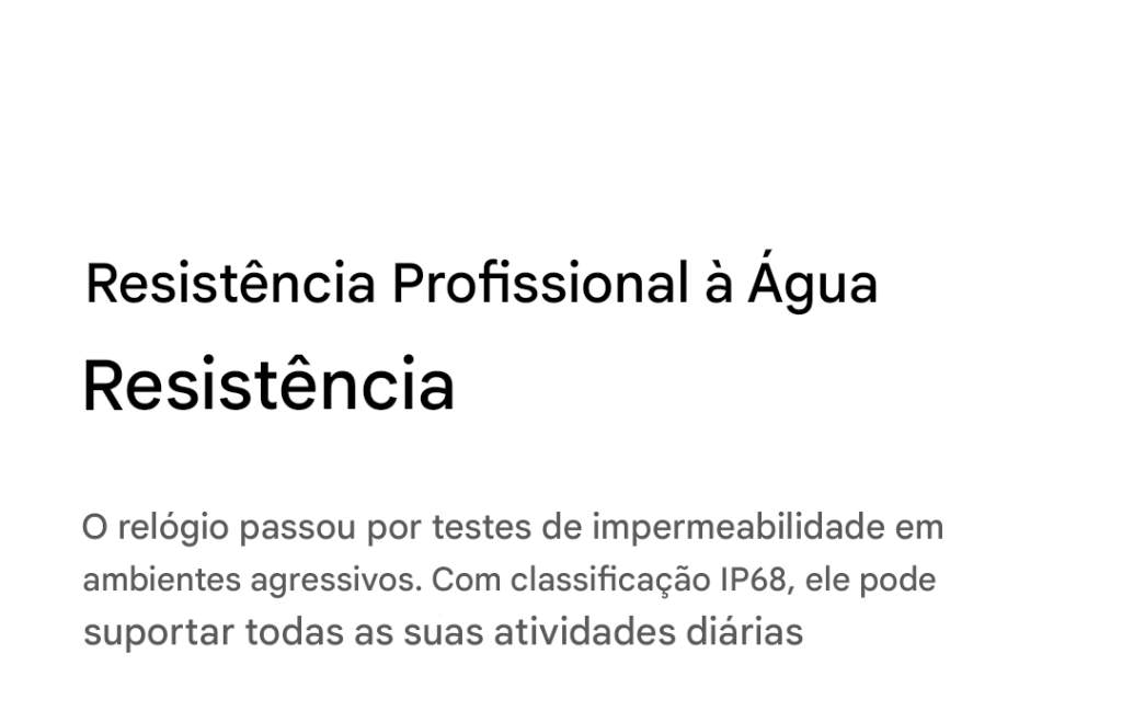 - Resistência: IP68 (mergulho até 50m)