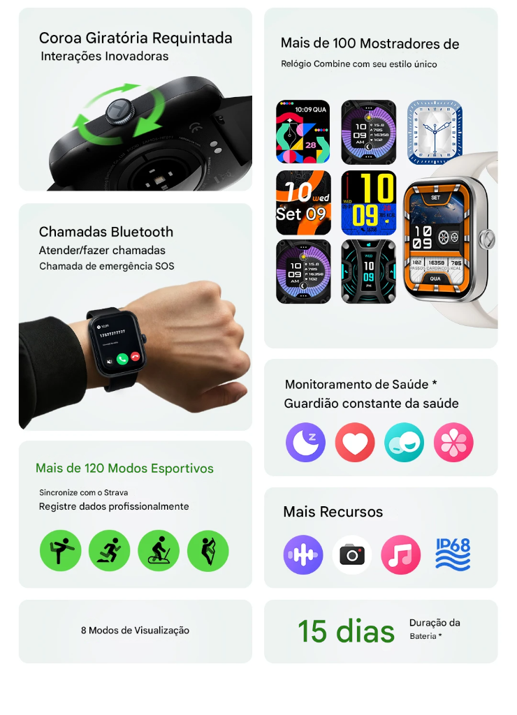 ❌ FALSO! Interface intuitiva, coroa giratória, assistente de voz com IA e sincronização automática!