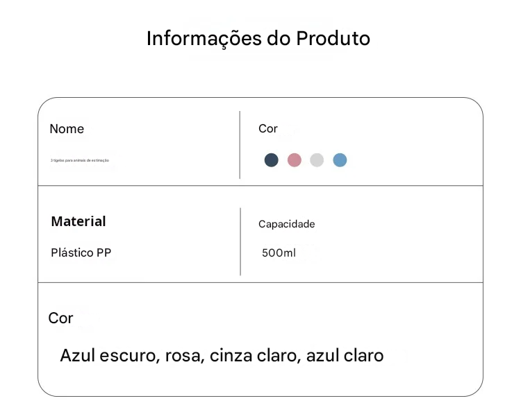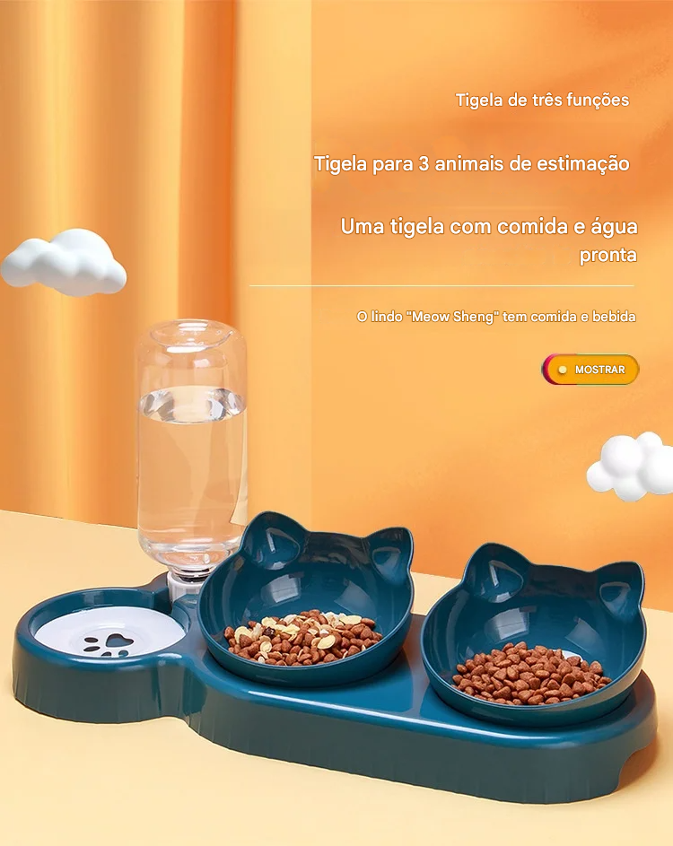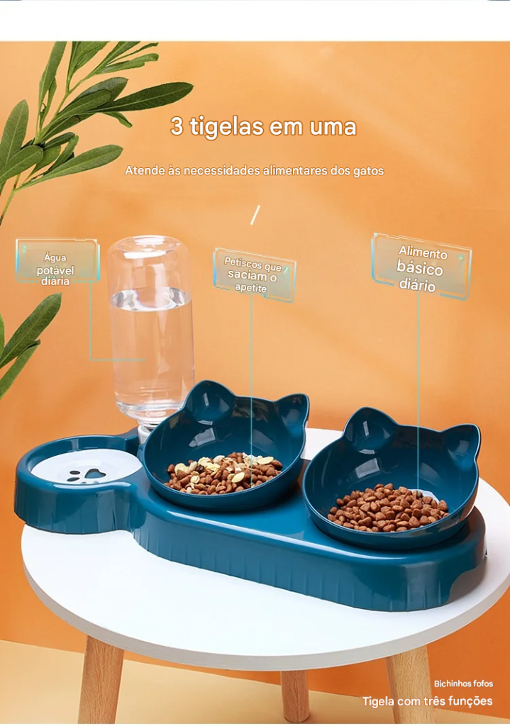 Tigelas de Água e Comida 3 em 1 Com Alimentador de Água Design de Orelha 500ml