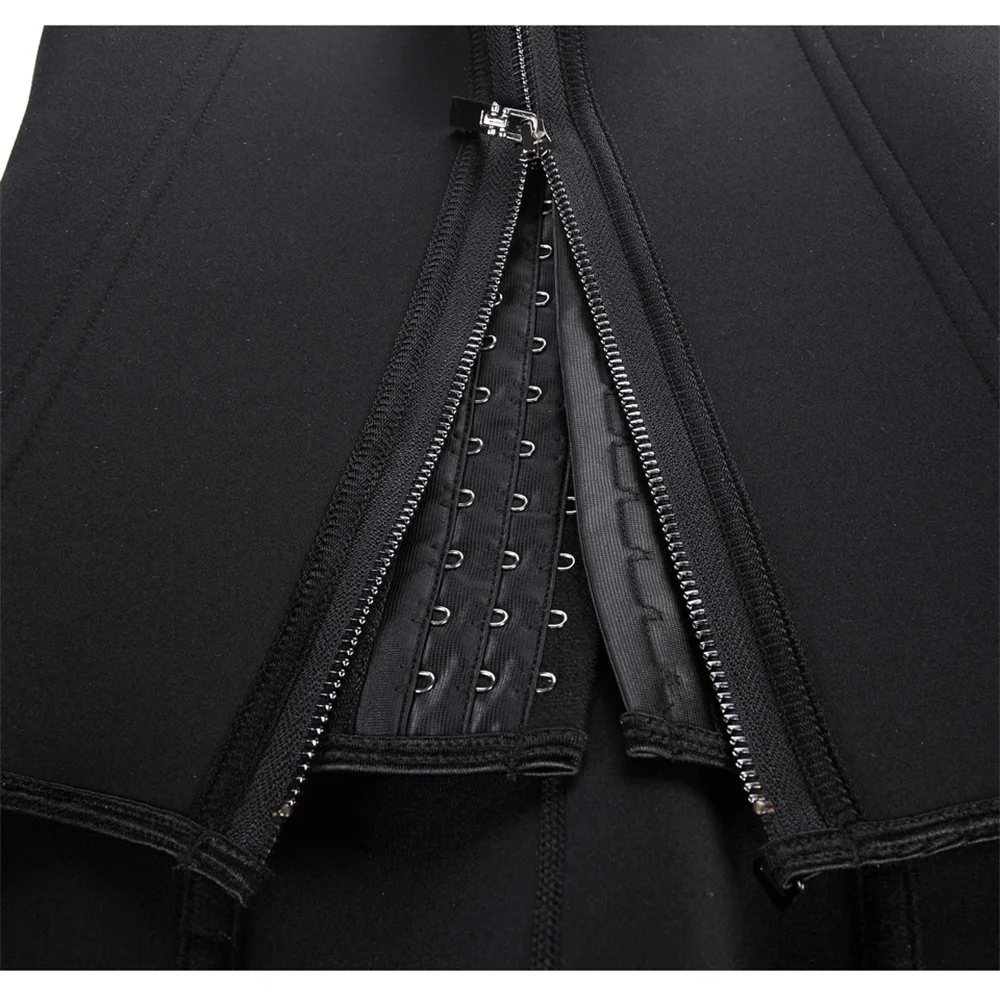 - Fecho: Zíper frontal + 3 fileiras de colchetes
