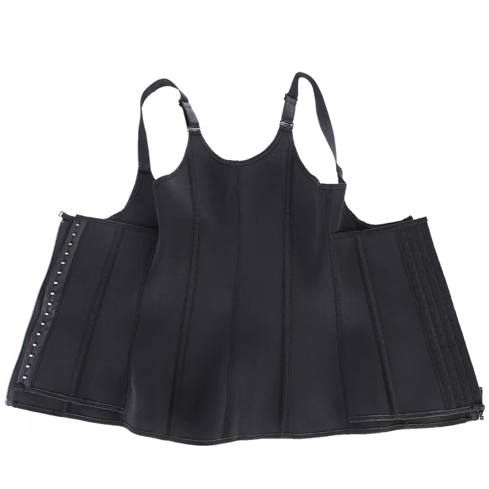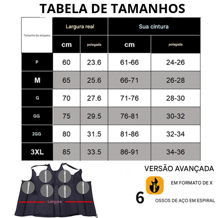 ✅ Solução: Disponível em 5 tamanhos (S, M, L, XL, XXL) + alças ajustáveis + 3 fileiras de colchetes + faixa de velcro ajustável. Literalmente, se adapta ao SEU corpo, não o contrário.