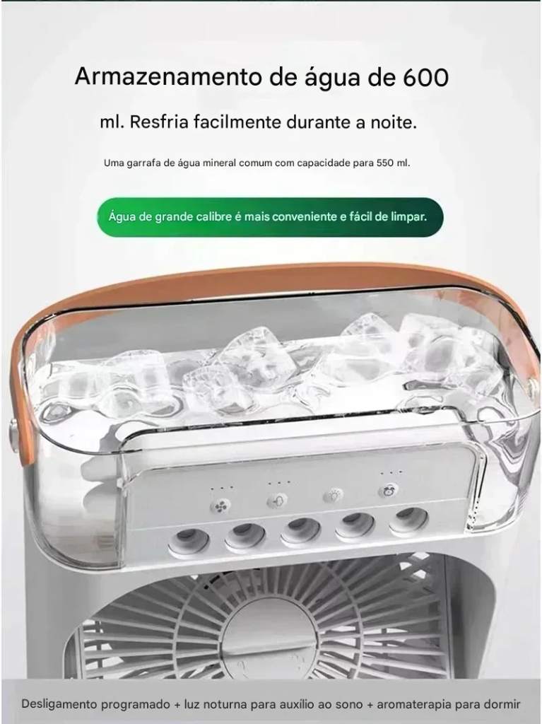 Ventilador Portátil Condicionadores de Ar 3 em 1 Com Luz Noturna Led