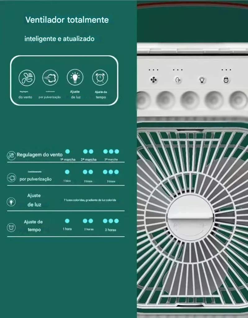 A ÚNICA solução 4 em 1 do mercado: Ventilador + Climatizador + Umidificador + Luz LED! 🏆