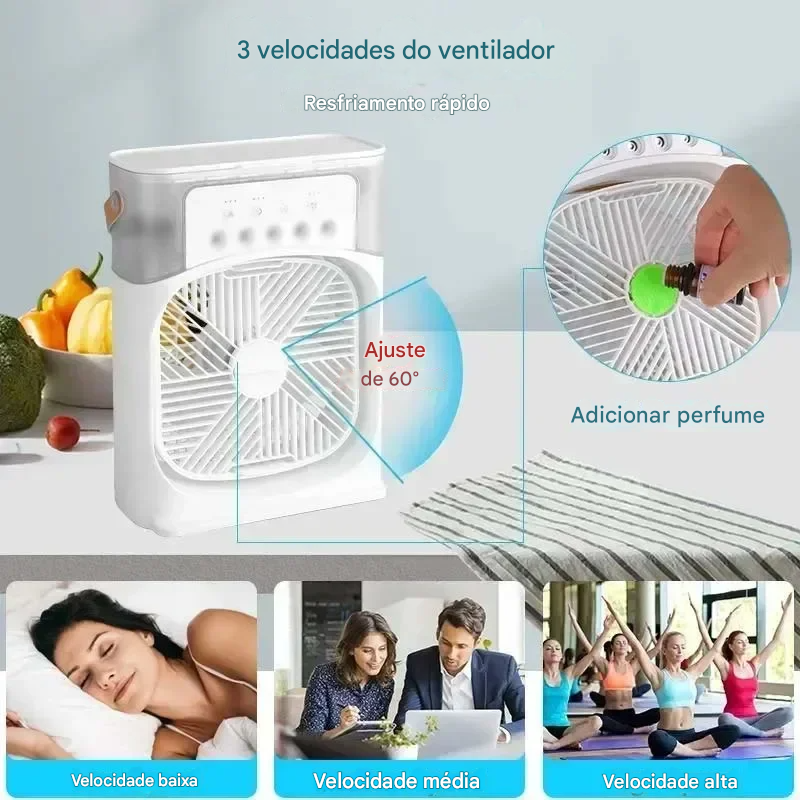🌬️ Ventilador Portátil Condicionadores de Ar 3 em 1 Com Luz Noturna Led